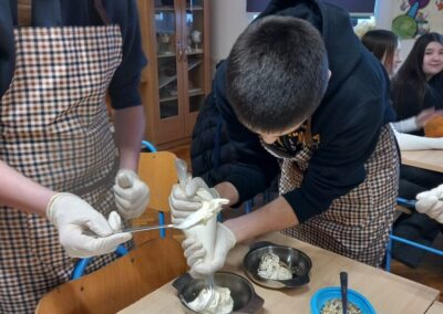 Svestrana namirnica buča se uklopila ne samo u već poznate štrudle i krem juhe nego smo ovom radionicom pokazali da je ukusna i u desertima u kojima se koriste i njeni proizvodi poput bučinog ulja i prženih sjemenki. Radionica je bila iznimno uspješna i ukusna što možete vidjeti iz galerije slika te da su naši učenici 8.razreda grupe Domaćinstvo vrsni u svemu čega se prihvate.