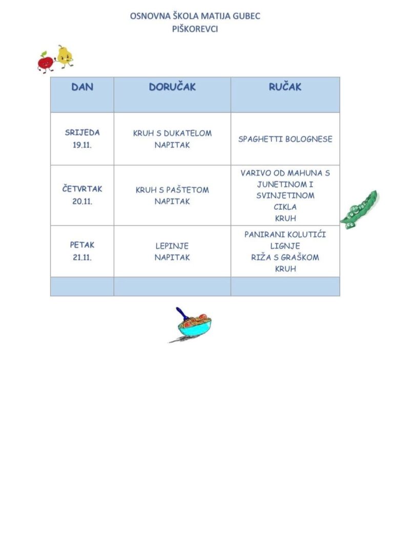 S obzirom na to da je temeljem Odluke o odabranim osnovnim školama koje će sudjelovati u Eksperimentalnom programu „Osnovna škola kao cjelodnevna škola – Uravnotežen, pravedan, učinkovit i održiv sustav odgoja i obrazovanja“, naša Škola uključena u navedeni projekt od školske godine 2023./2024., svi učenici imaju osiguran doručak i ručak u školi uz financiranje Ministarstva znanosti i obrazovanja od 2,00 eura po učeniku dnevno.