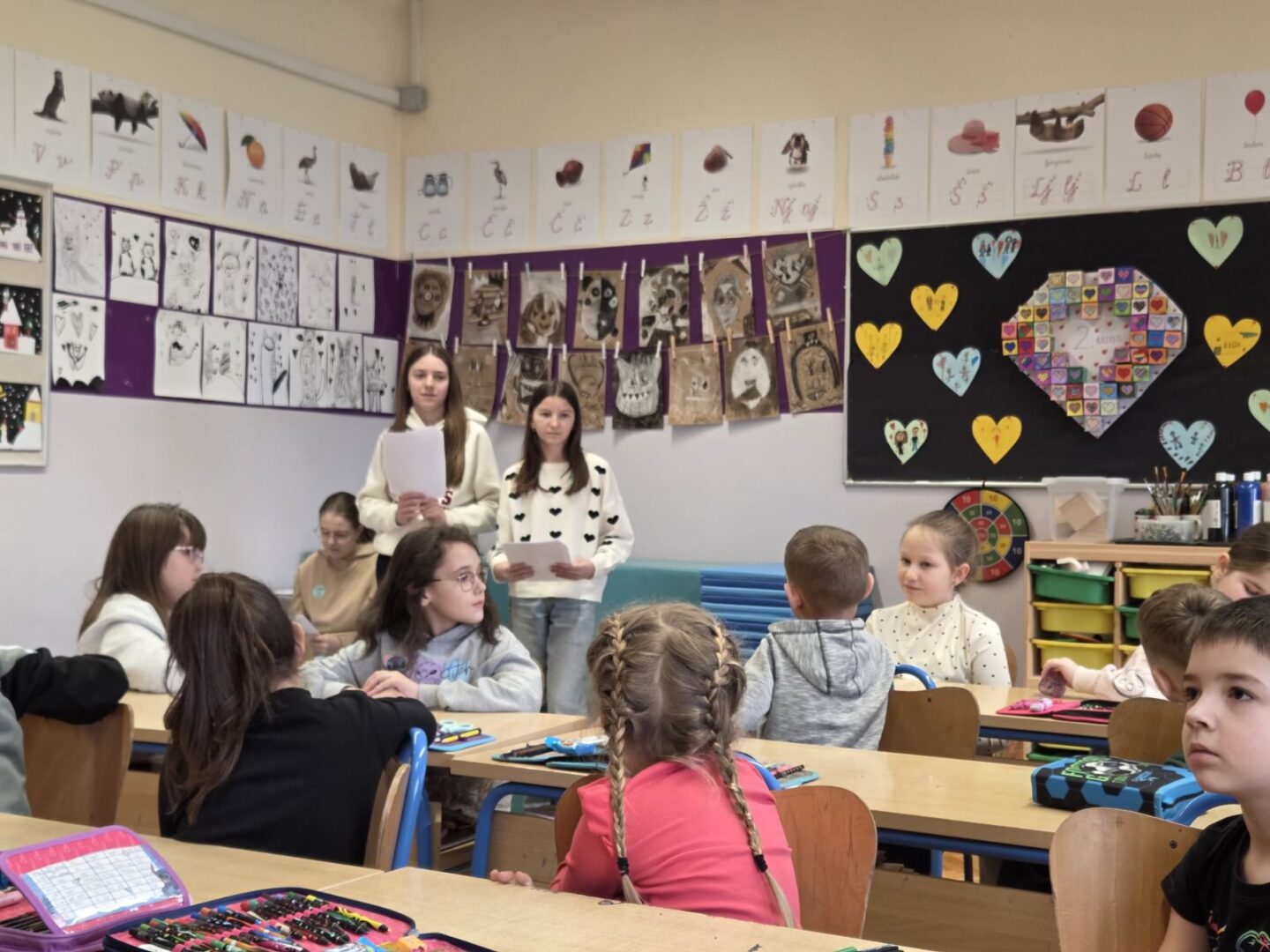 Naši su se „učitelji“ odlično snašli u novim ulogama – Dora Tremboš, Marta Galić i Dijana Ferić u drugom razredu, a Lara Ponjavić i Lucija Milušić u četvrtom razredu. Pokazale su veliku odgovornost i znanje, dok su mlađi učenici s velikim zanimanjem upijali savjete starijih prijatelja.