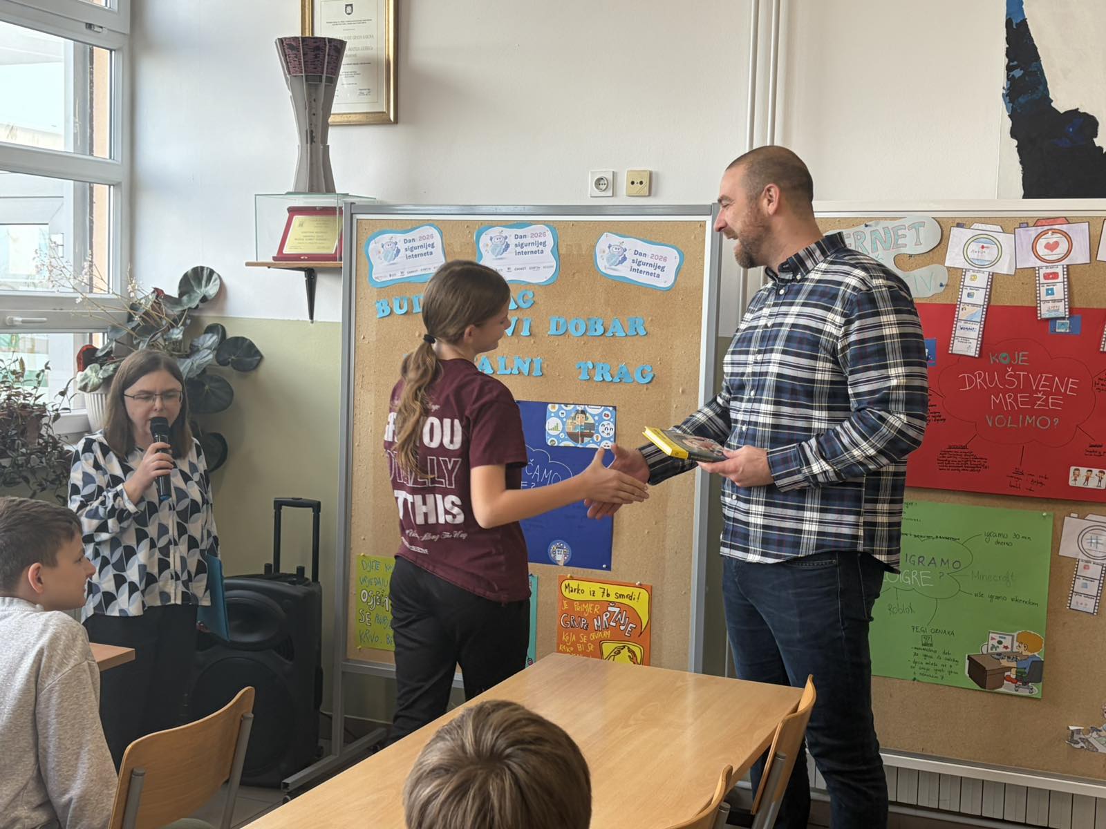 Na natječaj je pristiglo petnaest literarnih radova, a stručno je povjerenstvo odlučilo kako je ove godine najbolji rad učenice sedmog razreda Eve Markić pod nazivom „Moja najveća ljubav“. Eva nam je pročitala svoj rad i dobila veliki pljesak cijele škole. Ravnatelj Domagoj Perlić uručio joj je nagradu roman Mire Gavrana „Profesorica iz snova“, a njezin je rad knjižničarka poslala u časopis Modra lasta. Na kraju je Ivan Prskalo, učenik petog razreda, izrecitirao ljubavnu pjesmu Zvonimira Baloga „Prvi ljubavni sastanak“.